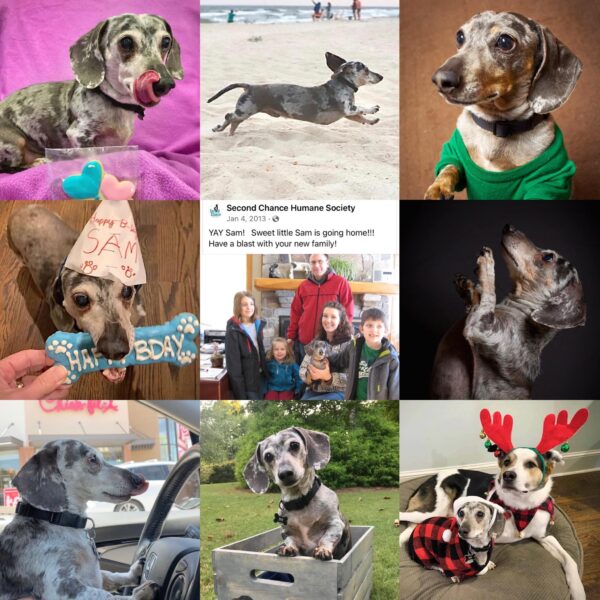 We adopted Sam the dachshund from you 9 years ago today. He was supposedly 6-7 years old then, so that puts him around 15-16 now with more adventures in store. We love our Old Man Sammy, and we are so glad he’s part of our family!