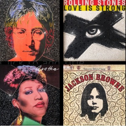 Haas embellishes music posters, record covers, antique & vintage posters, movie posters.