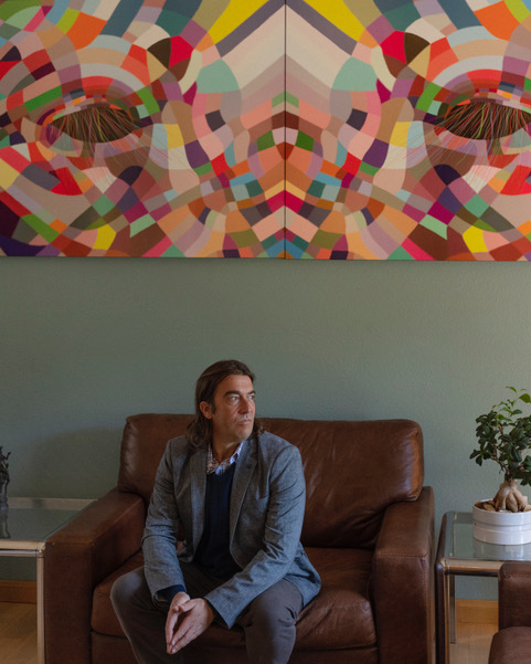 “No more than 15 people would see my over 70 acrylic paintings over the next two decades. I wasn’t ready to share my vision with the world. It wasn’t until going through a difficult divorce and the desire to be a role model for my son, Oliver Viking, that I would open up my heart and share my work. It was 2019 when I had my first show. And now I feel blessed to be where I am and understand things happened when they needed to. If I stop and take a look, many moments conspired to put me where I am at today.”
