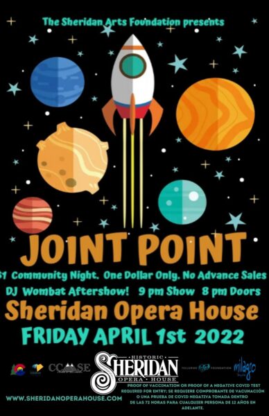 25 Mar Sheridan Arts Foundation: $1 Community Night ft. Joint Point, 4/1!