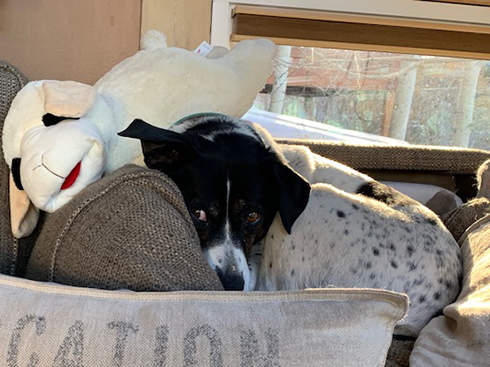 The falling-in-love part of this story is short. Steve and Janie got Shay Shay home and showed her the love and acceptance she needed so badly. Perhaps because she sensed this love and knew she’d never be abandoned or rejected again, Shay stopped having seizures completely. A local favorite around Telluride – neighbors, friends, and strangers all love the sweet, friendly, loving black-and-white dog with the beautiful eyes, whose favorite activity, besides hiking with her “Mom and Dad” has been participating in Second Chance’s Pets Turning Pages, where she goes into school classrooms to listen to children read to her, while she stares at them lovingly with those soulful brown eyes.