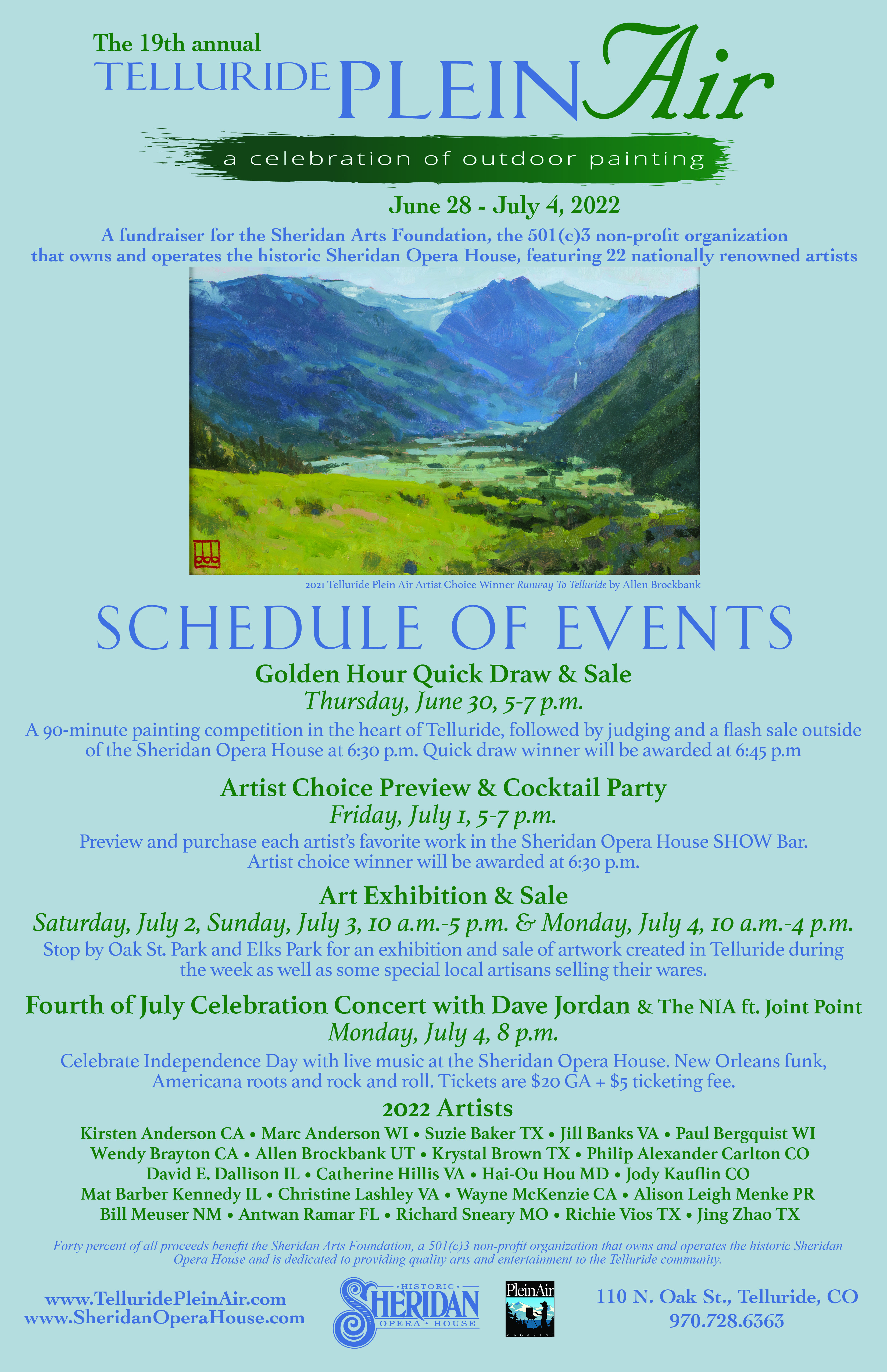 visit the Telluride Plein Air website at www.telluridepleinair.com or visit the Sheridan Arts Foundation website