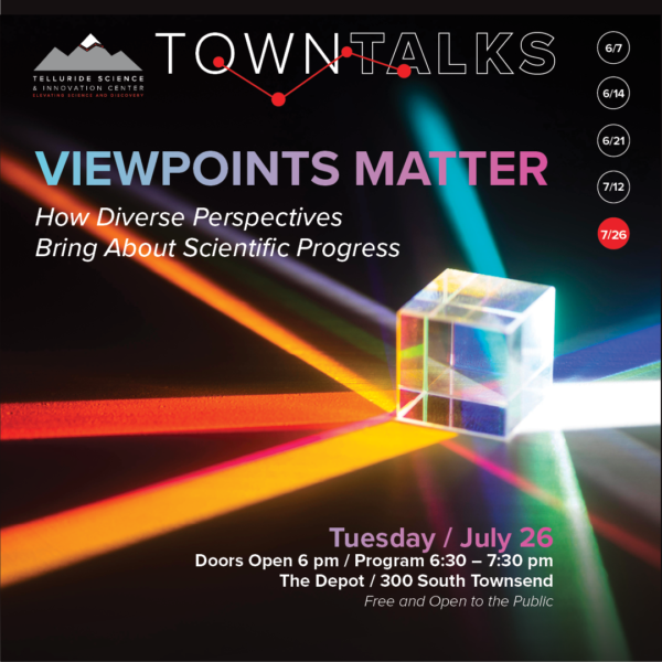 23 Jul Telluride Science Town Talk: “Viewpoints Matter, How Diverse Perspectives Bring About Scientific Progress,” 7/26!