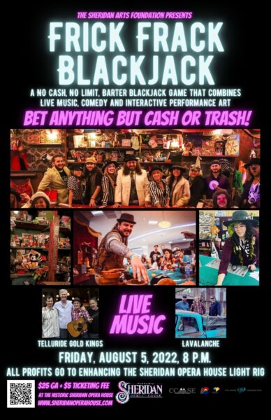 02 Aug Sheridan Opera House: Frick Frack Blackjack + Telluride Gold Kings & Lavalanche, 8/5!