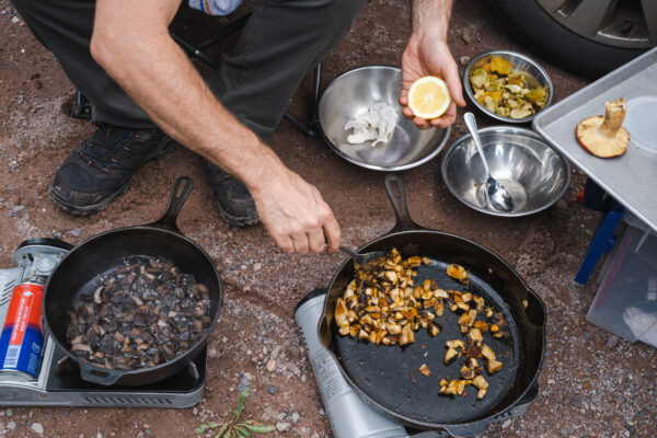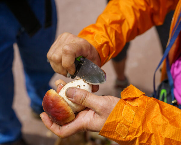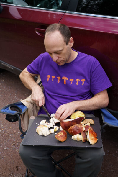 Here are a few of the photographs I took on these forays. What they show, is something many of us know and feel deeply, that these mountains are a joy to hike, with myriad discoveries beckoning at every step. As I do every year, I understand that I know less about fungi than I did the year before. Like mushrooms themselves, the study of fungi is a prolific and inexhaustible pursuit. It can also be remarkably delicious. One of the greatest pleasures this year, was eating fresh porcini and hawks’ wings cooked in the field. Mushroom scientists, it turns out, make very inventive chefs. Forget the arborio. Nothing beats a “field dressed” bolete, hot out of sizzling Lodge pan, hungrily eaten a few feet from where it grew.
