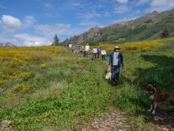 When the Telluride Mushroom Festival came to town, and after I had had my fill of an extravagant number of mushrooms, I decided to join two of the forays led by fungi experts into our neighborhood mountains. What I learned was that the familiar can look more exotic than any foreign land when seen through somebody else’s eyes. It was a deep pleasure to watch the giddy glee of seasoned professionals encountering elusive fungal species, as well as newly minted mushroomers finding their first bolete.