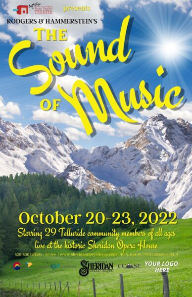 The Sheridan Arts Foundation’s Not-So-Young People’s Theater presents “The Sound of Music” on Thursday, October 20 through Sunday, October 23, 2022, 7 p.m. nightly, live at Telluride’s historic Sheridan Opera House.