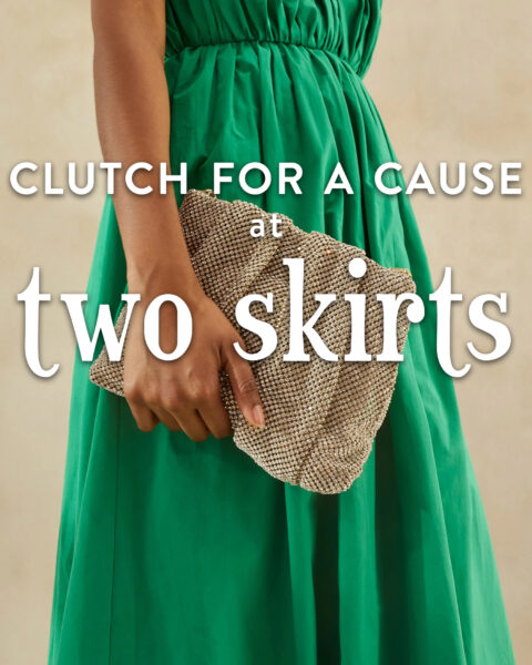 Been eying those designer bags in the store windows of Two Skirts? Now is the time to act. Again, all brand new bags, totes, clutches, and wallets are 20% off during “The Clutch” and Kristin will generously donate the proceeds from those sales too.