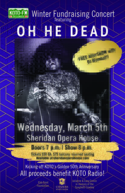 Tickets are $50 for General Admission; $75 for reserved balcony seating. All proceeds benefit KOTO Community Radio! Get your tickets now at sheridanoperahouse.com!
