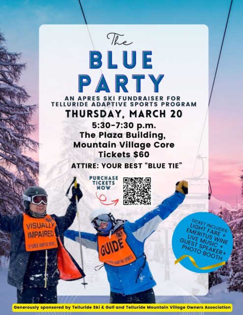 Tickets for the event are are available online at https://tellurideadaptivesports.org/event/blue-party-fundraiser/