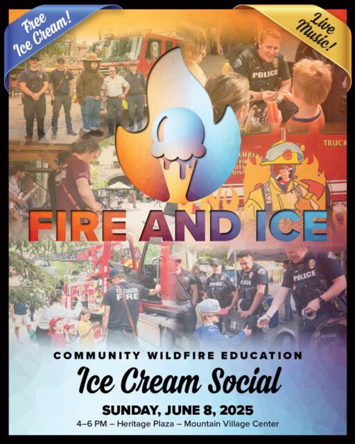 The Town of Mountain Village Police Department, San Miguel County Office of Emergency Management and Telluride Fire Protection District present “Fire and Ice,” an afternoon of wildfire education on Sunday, June 8.
