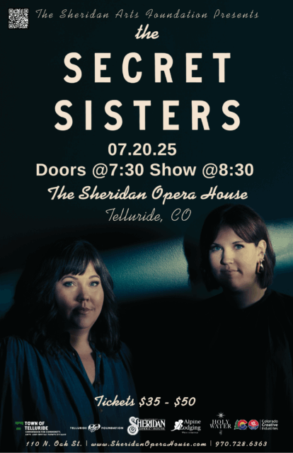 Telluride’s Sheridan Arts Foundation is thrilled to present Secret Sisters live in concert at the historic Sheridan Opera House. Show takes place Sunday, July 20th. Doors 7:30 p.m.; Music, 8 p.m.