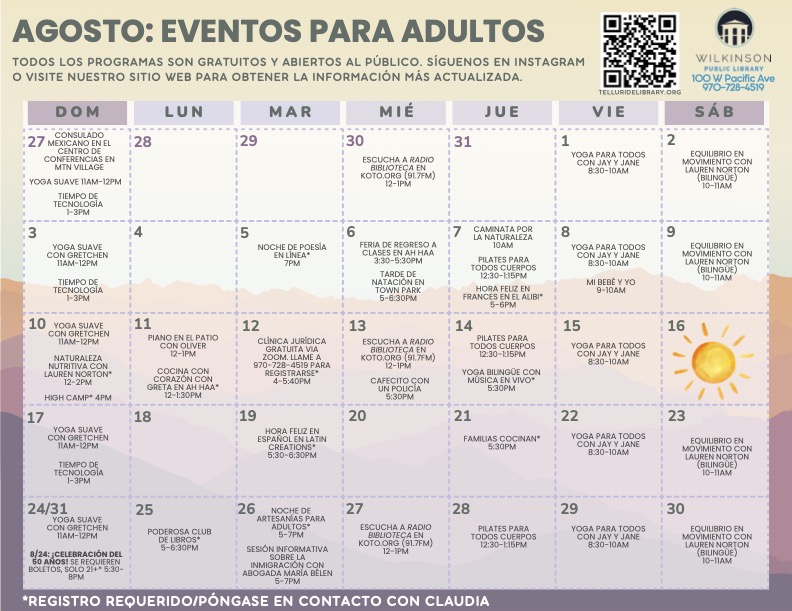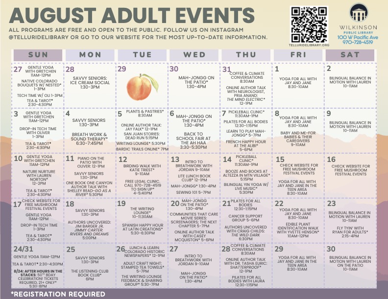 Telluride’s Wilkinson Public Library announces its July schedule for adults.