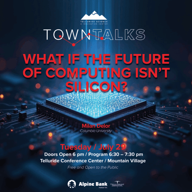 This coming week the 2025 Telluride Science Town Talks series continues with “What If Future of Computing Isn’t Silicon?” The event features Dr. Milan Delor and takes place Tuesday, July 22. Doors 6 p.m.; talk, 6:30 p.m