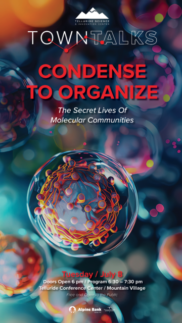 02 Jul Telluride Science Town Talks: “Condense to Organize: Secret lives of Molecular Communities,” 7/8!
