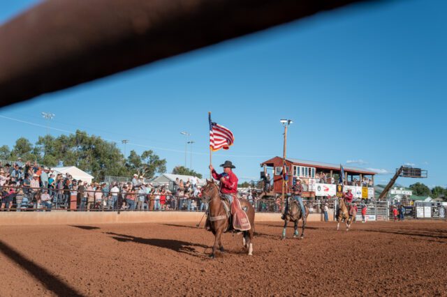 The San Miguel Basin Rodeo in Norwood never disappoints! This year, there was something for everybody: Mutton Bustin’, Calf Riding and Stick Horse Races for the kids; Wild Steer Dragging; Ladies Barrel Racing; Bull Riding; Mixed team Roping; and Bareback Bronc Riding for everyone else.