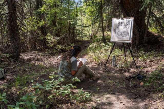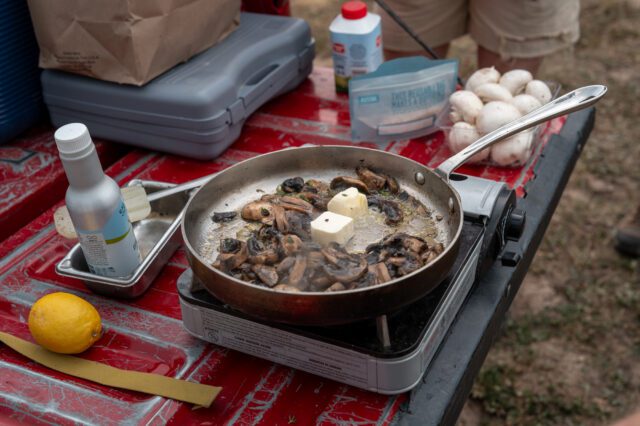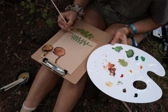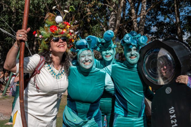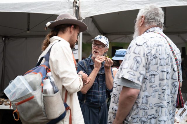 “Only a few tiny mushrooms to be found after a dry summer, but that didn’t stop this year’s Mushroom Festival from being one of the best in its 45-year history. Instead of filling our baskets with boletes and chanterelles, we forayed to draw the forest; to somewhat hilariously cook button mushrooms from Clark’s for a field demonstration; to sing and orate about fungi on stage; to learn about all manner of scientific properties of mycelium from a global group of experts; and as always to parade in glorious costumes singing We Love Mushrooms! down Main Street and into Town Park. Here are a few glimpses of the fun,” explained Lisa.