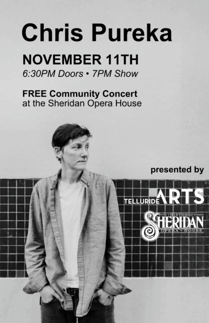 Telluride Arts and the Sheridan Arts Foundation are thrilled to invite the community to an evening of live music, connection, and creative celebration featuring internationally acclaimed singer-songwriter Chris Pureka.