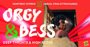Overview: Heartbeat Opera presents its 10th Annual Drag Extravaganza, an hilarious, irreverent party at the bold intersection of drag and opera! ORGY & BESS takes off from Porgy and Bess, but goes on to skewer the entire opera canon. What happens to Bess after Porgy? She stumbles from the 1920s into 2025 NYC, and the first person she meets is Cio-Cio-San from Madama Butterfly. Then it’s Lucia from Lucia di Lammermoor. As more characters travel through the magical glory hole, the orgy heats up, and Bess learns about the trap of being a trope. Together with her new sisterhood, she takes a journey to radical self-love through a whirlwind of arias and numbers from Madama Butterfly, Turandot, Norma, Lucia, Carmina Burana, Lohengrin, The Mikado, The Wiz, Rent, and more!