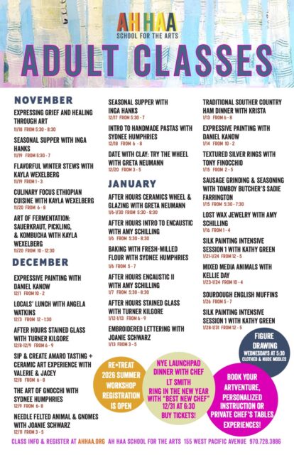 Telluride’s Ah Haa School for the Arts is thrilled to welcome Chef LT Smith from Phoenix to Ah Haa on New Year’s Eve! Celebrate the new year and support Ah Haa School for the Arts! December 31st at 6 pm. $500 per person.