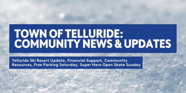 Telluride Ski Resort Update, Financial Support, Community Resources, Free Parking Saturday, Super Hero Open Skate Sunday.