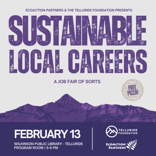 Join the Telluride Foundation and EcoAction Partners for a community job fair featuring employers like Tri-County Health Network, the Telluride School District, San Miguel County, local contractors, and additional local employers.