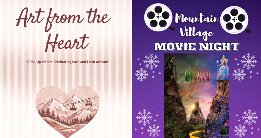The Town of Mountain Village invites residents and visitors to celebrate Valentine’s weekend with two family-friendly community events at the Telluride Conference Center: the Art from the Heart Market on February 14 and a free Mountain Village Movie Night screening of “Wicked: For Good”on February 15. Together, the events offer a weekend of shopping local, creative fun, and shared entertainment for all ages.