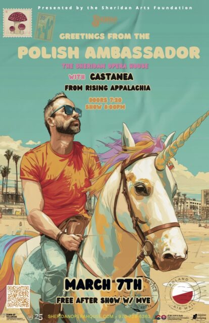 Telluride’s Sheridan Arts Foundation presents The Polish Ambassador live in concert at the historic Sheridan Opera House. The concert takes place Saturday, March 7th. Doors open at 7:30 pm; show begins at 8:00pm. The evening also features an opening set by Castanea of Rising Appalachia, followed by a free DJ MVE after show in the SHOW Bar.