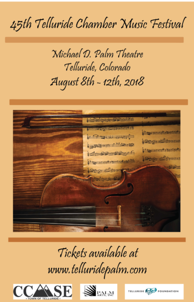 28 Jul 45th Annual Telluride Chamber Music Festival, Now at The Palm, 8/7-8/12