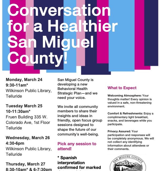 The following is a note from County Commissioner Anne Brown. One of the top three priorities of the San Miguel County Board of County Commissioners (BOCC) for 2024-25 is to increa