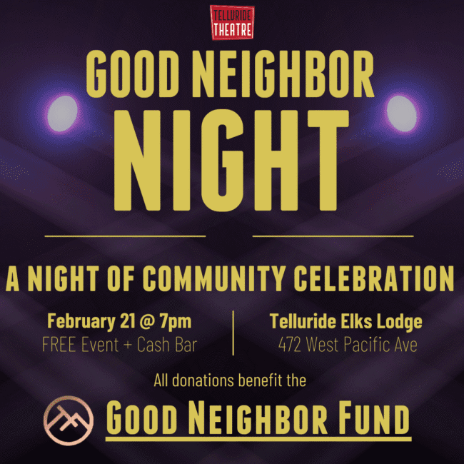 Telluride Theatre: Good Neighbor Night, 2/21!