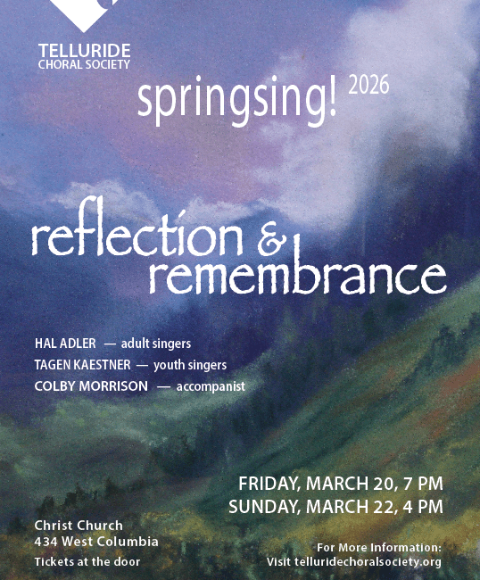 Telluride Choral Society: SpringSing, “Reflection and Remembrance,” 3/20 & 3/22!