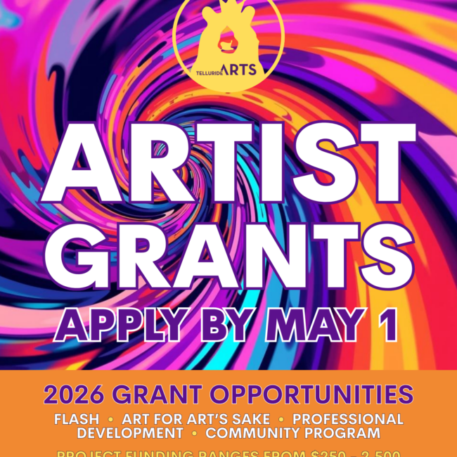 Telluride Arts Announces 2026 Direct Grants Program supporting local artists and community creativity. For more information contact Jessica Galbo, Executive Director: jessica@tellu