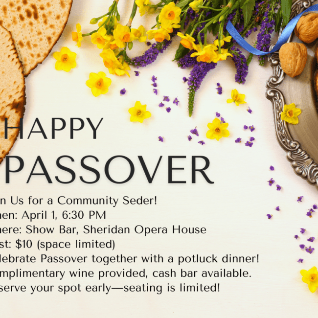 Telluride Jewish Community: Upcoming Shabbat, Passover & More, 3/20, 4/1 & 4/12!