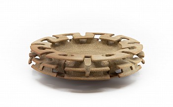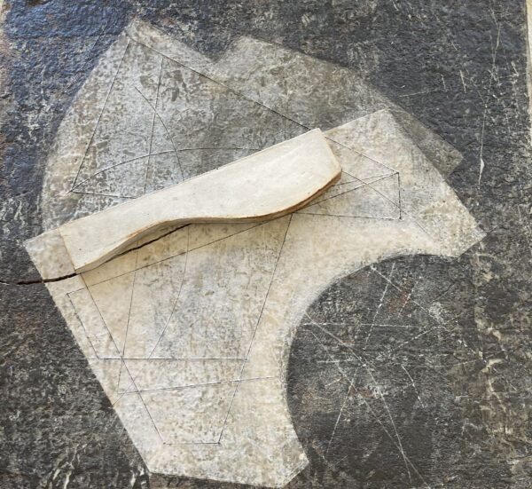 “An ethereal palette brings heightened sensitivity to faint tonal traces and subtle hues. Where the invisible is made visible, and the obvious fades away, secret destinies are contained in hidden messages. Made by hand, direct from the unconscious, clay is the medium to manifest the mind. The waves represent natural movements and cycles, powerful arcs, pulses and currents within gravity defying shapes. Underwater sea creatures and waves act as symbols connecting an ancient prophecy to the desert, this landscape which once was underwater 800 million years ago.”