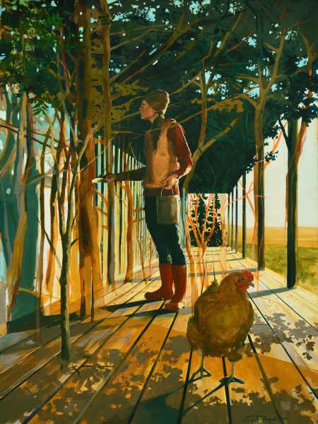 “Home Fire” was composed alongside a series of moves that set Palmquist voyaging from west to east and west again. This fluttering about left the artist doing double-takes on her sense of place and connection. The results invite viewers to step into a narrative of mixed origins where the familiar co-mingles with the projected, the past, the day-dreamed, and other deviating realms.
