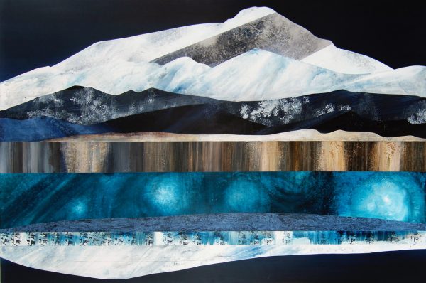 Sarah Winkler, is showing her large-scale acrylic landscapes, the layers of which mimic patterns of geological erosion. With crushed minerals incorporated directly into the paint, her work is grounded materially in her subject matter itself. Beloved local artist, Molly Perrault, is exhibiting her mesmerizing magazine collages of Telluride landscapes. Rebecca Messier’s evocative wall installations are on display.