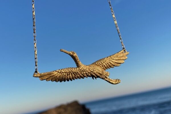 Among Heather’s favorite pieces in the trunk show is a new crane necklace.